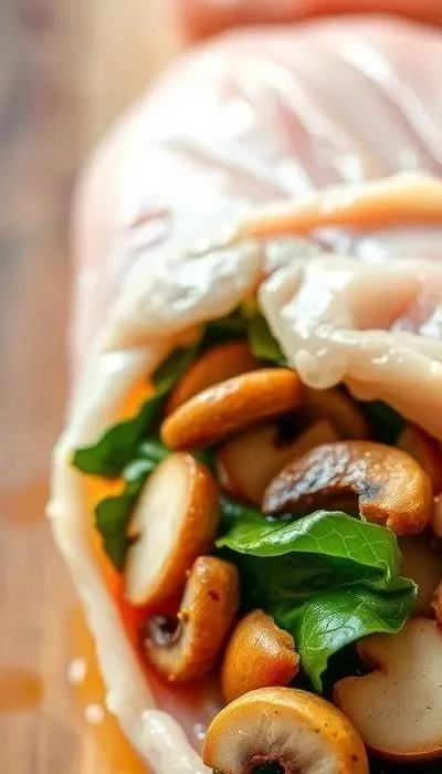 Шпинат и грибы – классическое сочетание, которое идеально подходит для куриных рулетиков. Шпинат можно использовать как свежий, так и замороженный. Грибы обжарить с луком до золотистого цвета. Смешать шпинат с грибами и добавить немного тертого моцареллы. Такая начинка сделает рулетики более сочными и ароматными.