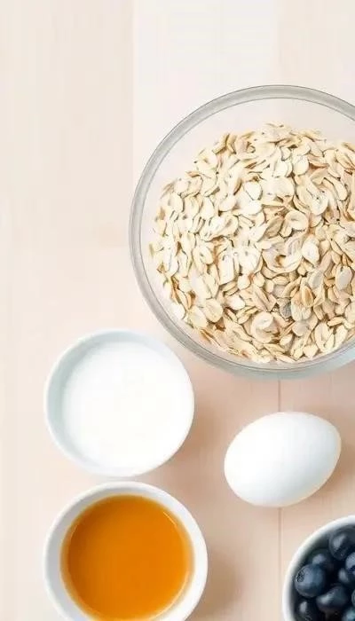 - Ингредиенты: Овсяные хлопья – 80 г, Кефир – 100 мл, Яйцо – 1 шт., Разрыхлитель – 1/2 ч.л., Подсластитель (по желанию) – 1 ч.л.
