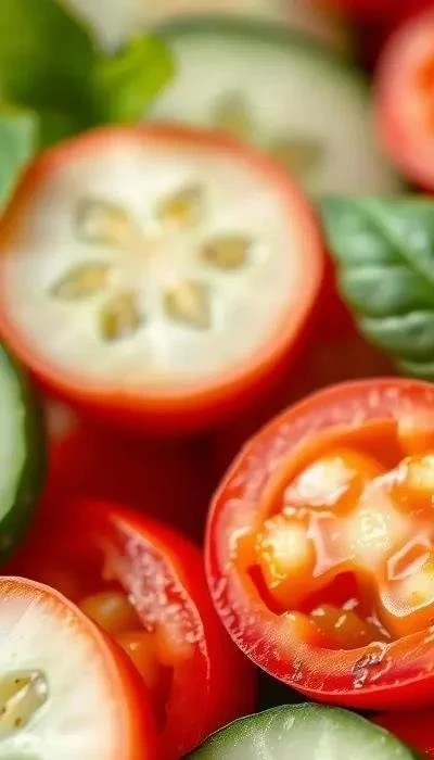 Огурцы, богатые водой и витамином К, способствуют увлажнению кожи и уменьшению темных кругов под глазами. Помидоры содержат ликопин – мощный антиоксидант, защищающий кожу от вредного воздействия ультрафиолетовых лучей и преждевременного старения.