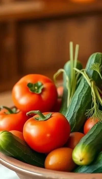 Огурцы, благодаря высокому содержанию воды и клетчатки, способствуют нормализации работы кишечника и предотвращают запоры. Помидоры содержат органические кислоты, стимулирующие выработку желудочного сока, что улучшает пищеварение.