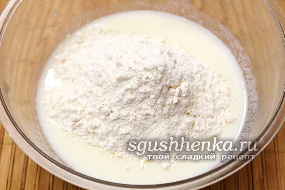 - Досыпают смесь муки, соды и соли.