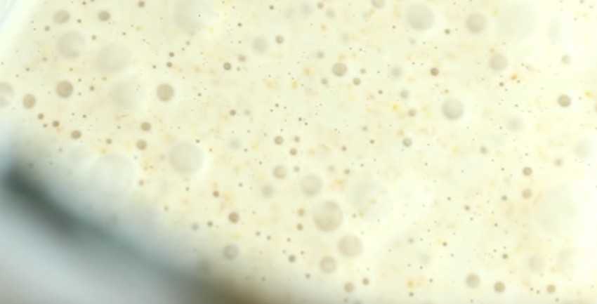 1. Сначала сделайте опару. Закваска достаньте их холодильника заранее — она должна быть комнатной температуры. Добавьте в закваску рисовую муку и тёплую воду. Смешайте, накройте плёнкой, сделайте отверстие. Оставьте опару в тёплом месте на 3-6 часов.