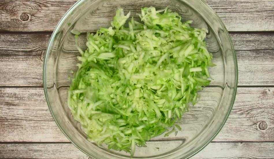 - Измельчить кабачки на крупной терке, без кожицы