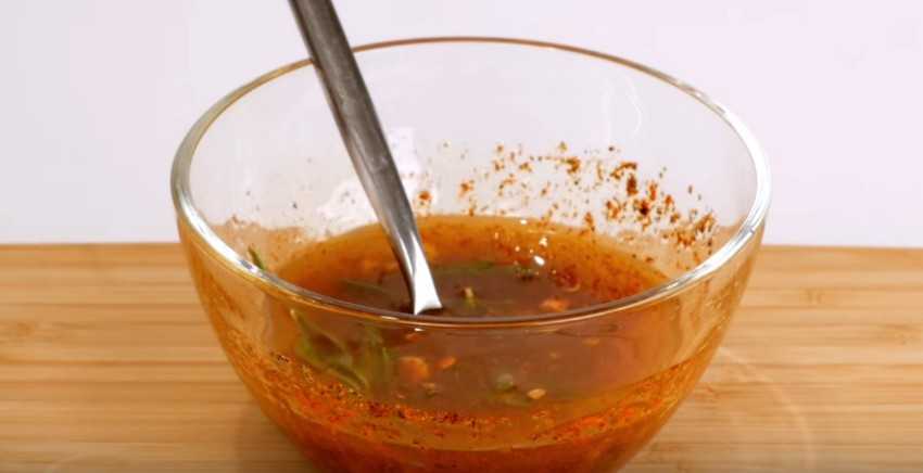 1. Смешайте сок лимона, паприку, мелко порубленный чеснок, перец чили, розмарин и масло.