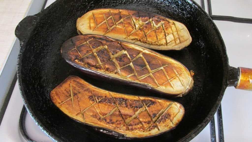 Для сохранения в морозильнике целых баклажанов покупают молодые и не порченые овощи. Далее сырые плоды стоит хорошо промыть, не отрывая плодоножку, и в кожуре поместить на сковороду. При этом на плите рекомендуют выставлять минимальное значение для огня, чтобы овощи не подгорели.