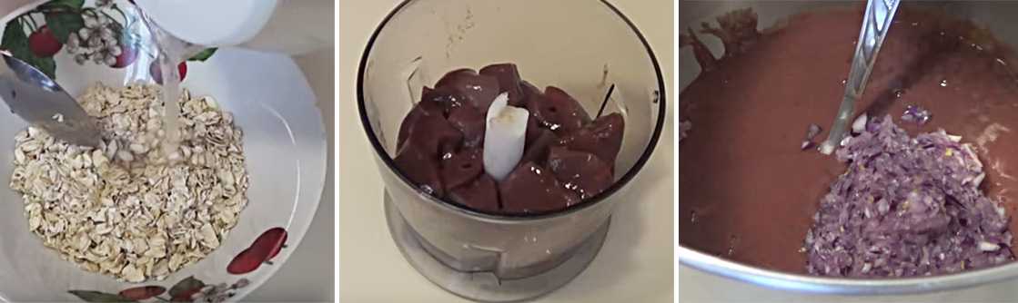 2. Пока овсянка готовится мы занимаемся печеночной массой. Для этого измельчаем печень любым удобным для Вас способом (на мясорубке или при помощи блендера).