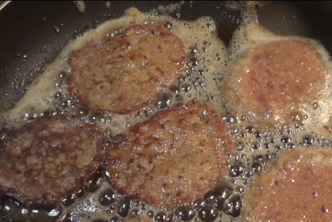 Обжариваем по 2 — 3 минуты на огне чуть ниже среднего. Этого времени достаточно, чтобы печеночные оладьи не только подрумянились, но и полностью пропеклись внутри.