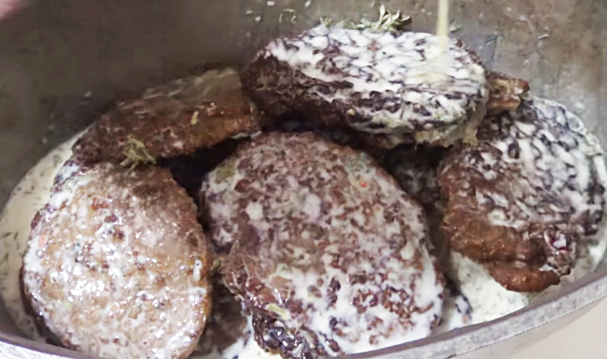 6. Котлеты укладываем в посуду с толстым дном (например, утятницу), заливаем соусом. Отправляем в духовку на 15 минут.