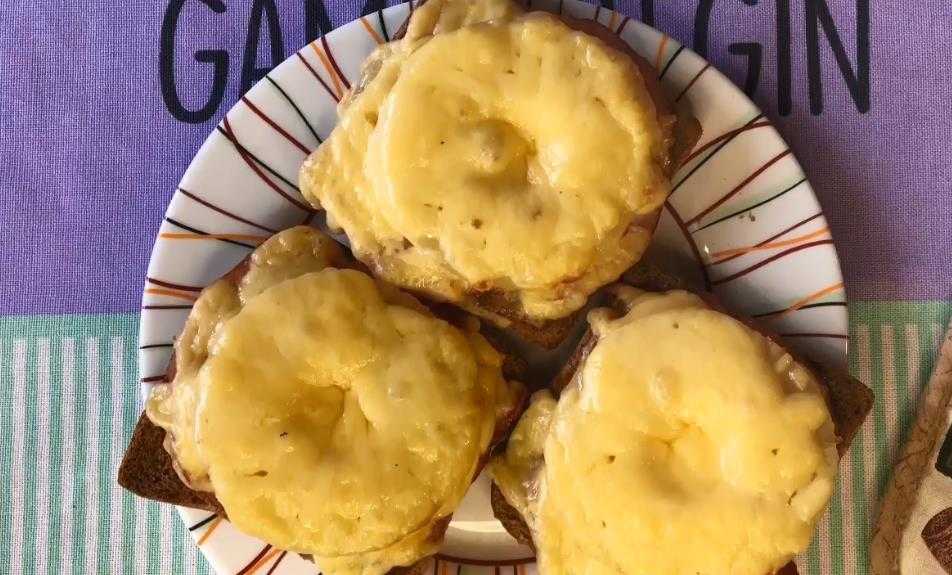 - Творог соединяют с сырыми яйцами, сливочным маслом и мелкими сухариками. После намазывания на хлеб блюдо выпекают в духовке пару минут.