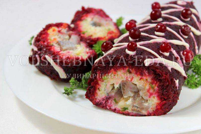 Селедка под «шубой» – привычна и обыденна. Попробуйте приготовить на новогодний стол вариацию этого салата в виде закуски – она будет смотреться эффектнее и наряднее.