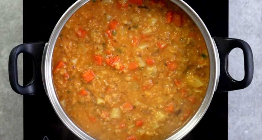 Провариваем еще 5 минут, закрываем крышкой, давая постному супу настояться.