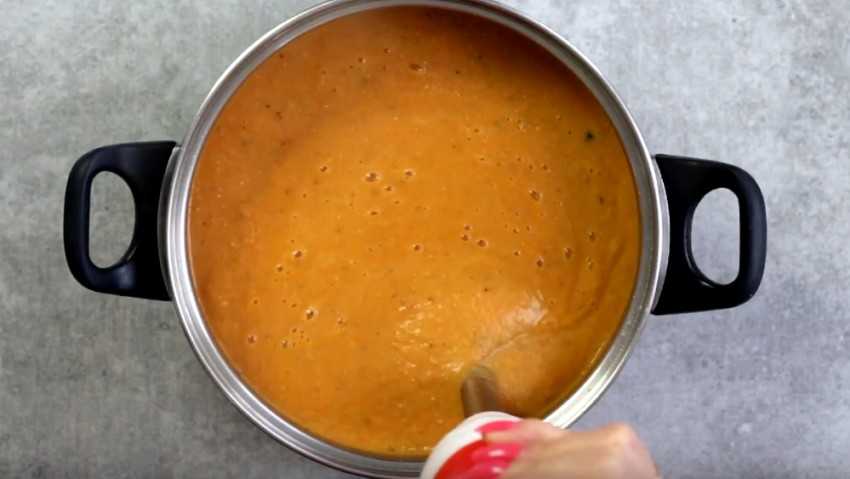 - Сваренную кашу измельчите с помощью блендера до состояния пюре.
