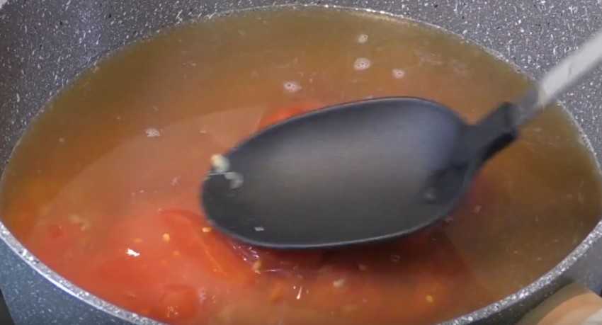 Затем в бульон поместите все ингредиенты, и продолжайте варить до готовности. Среднее время – 15 минут.
