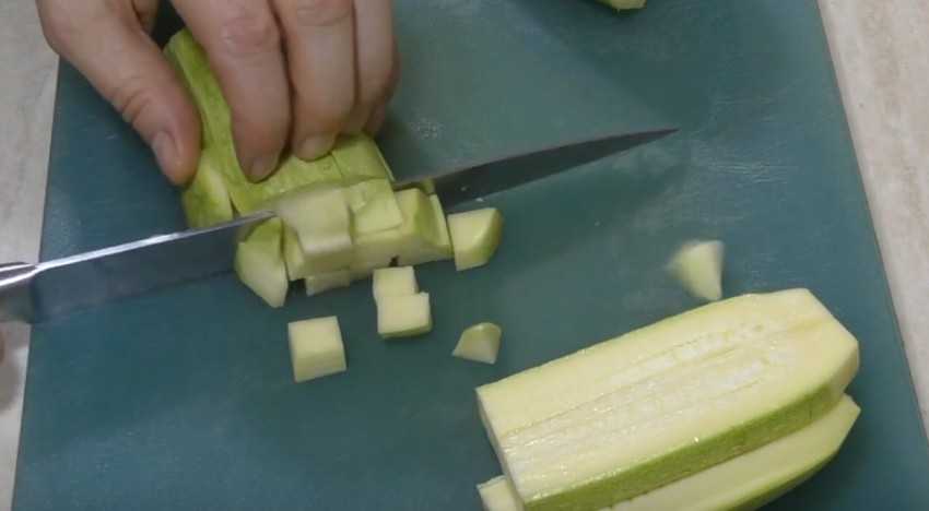 Нарезать кубиками среднего размера лук, морковь и картофель.