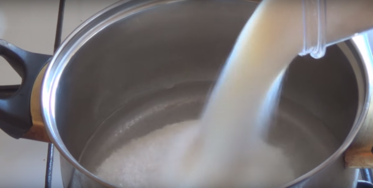 - далее вливают туда около 160 мл воды и доводят до стадии кипения.
