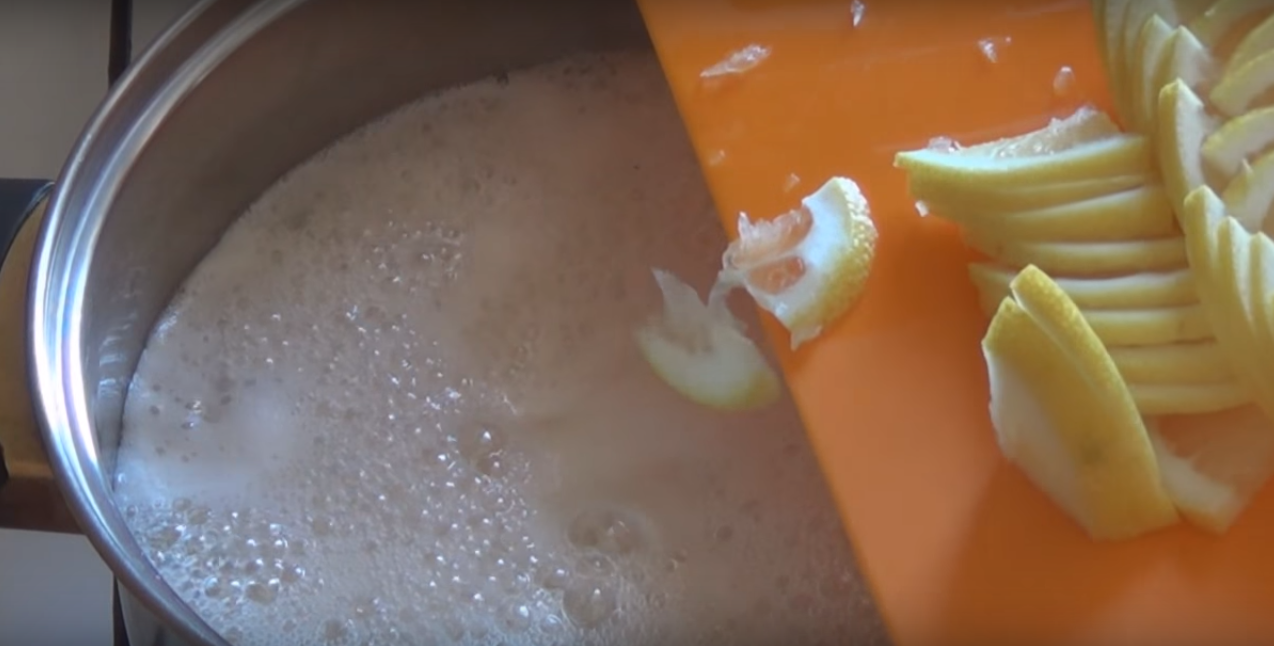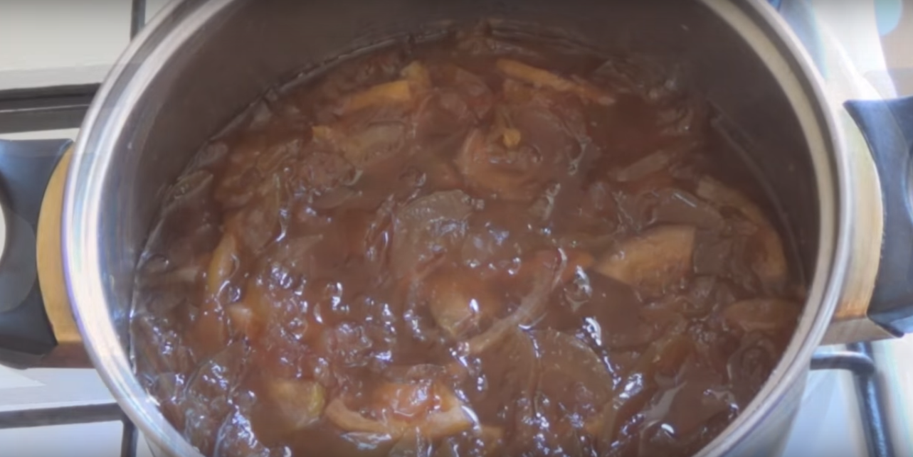 - Мякоть окропляют лимонным соком и варят на медленном огне до размягчения, периодически помешивая.