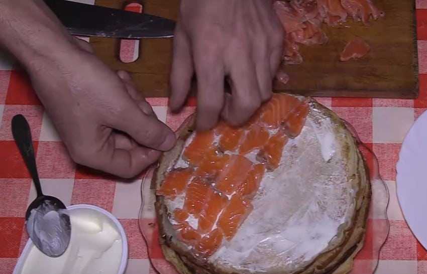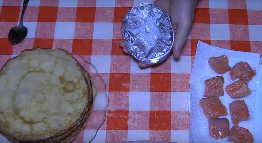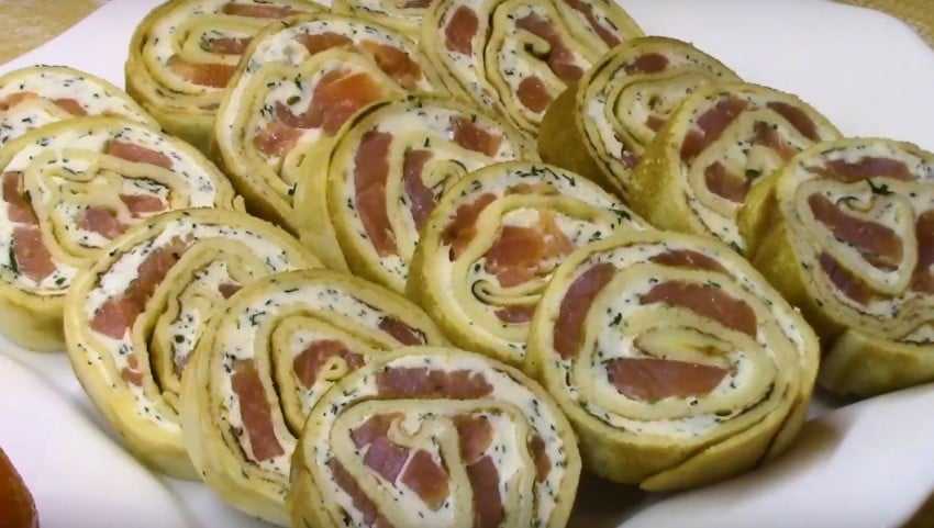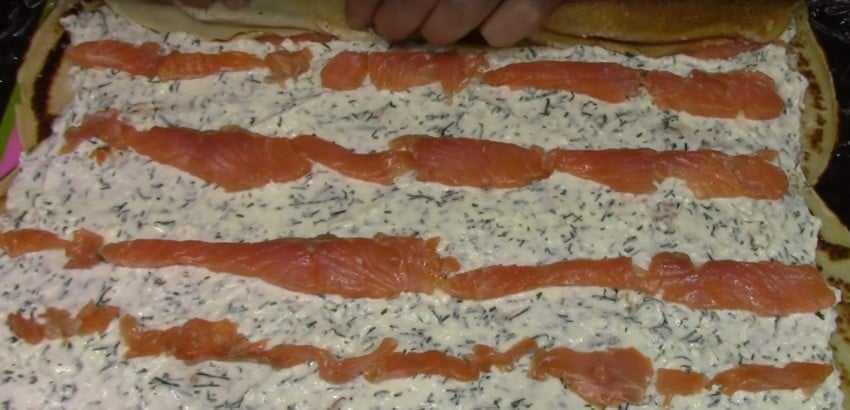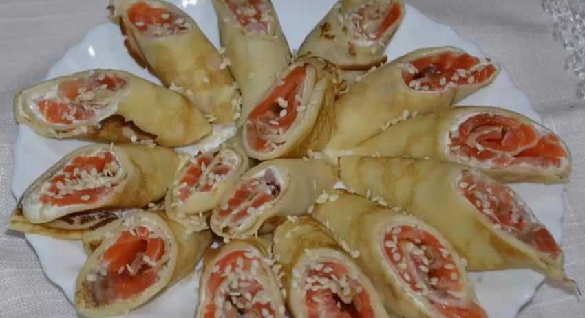 Блины с красной рыбой и сыром творожным – вкусные роллы с семгой