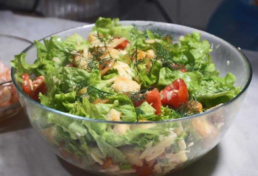 Классический вариант Цезаря отличается легкостью приготовления и полезностью. Если правильно приготовить салат, он превратится в идеальное дополнение повседневного меню. Креветочная закуска не сможет добавить человеку лишних килограмм и подойдет для лиц, соблюдающих диету.