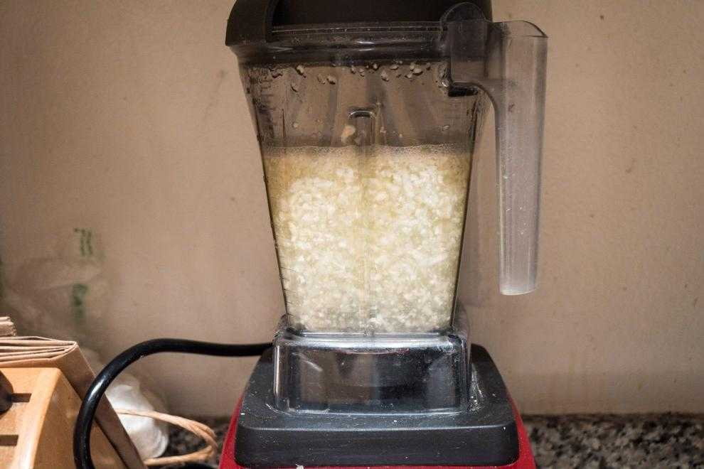 2. Включите блендер и следите за тем, чтобы у вас получилась жидкость без цельных зерен риса. Обычно на это уходит не более пары минут. Однако помните, что чем дольше вы будете смешивать рис и воду, тем более легкой и гладкой будет консистенция вашего рисового молока.