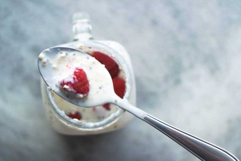 С вечера насыпать хлопья в кефир, оставить на ночь.