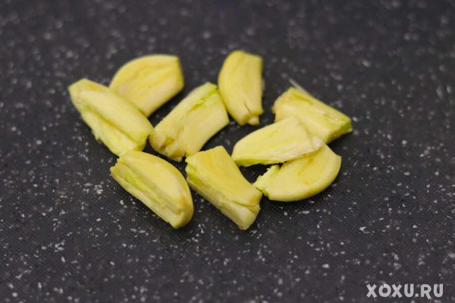 - Чеснок чистим, пропускаем через пресс, отправляем в соус.