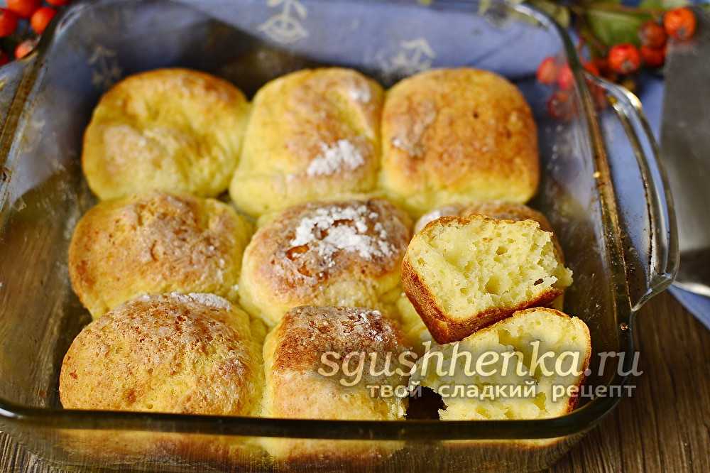 Форму для запекания застелите пергаментом и выложите в нее заготовки на расстоянии друг от друга. Оставьте булочки еще на 20-30 минут в теплом месте, затем выпекайте их в духовке при 200 градусах 20-30 минут.