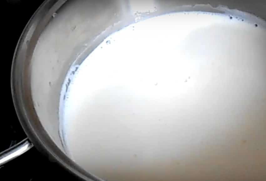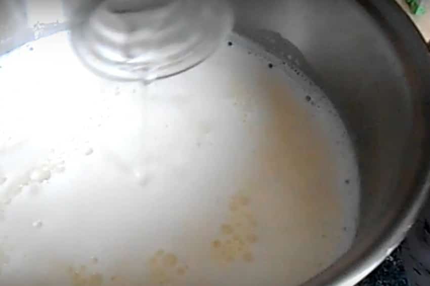 - В не эмалированной емкости хорошо нагрейте молоко, почти доводя его до кипения.