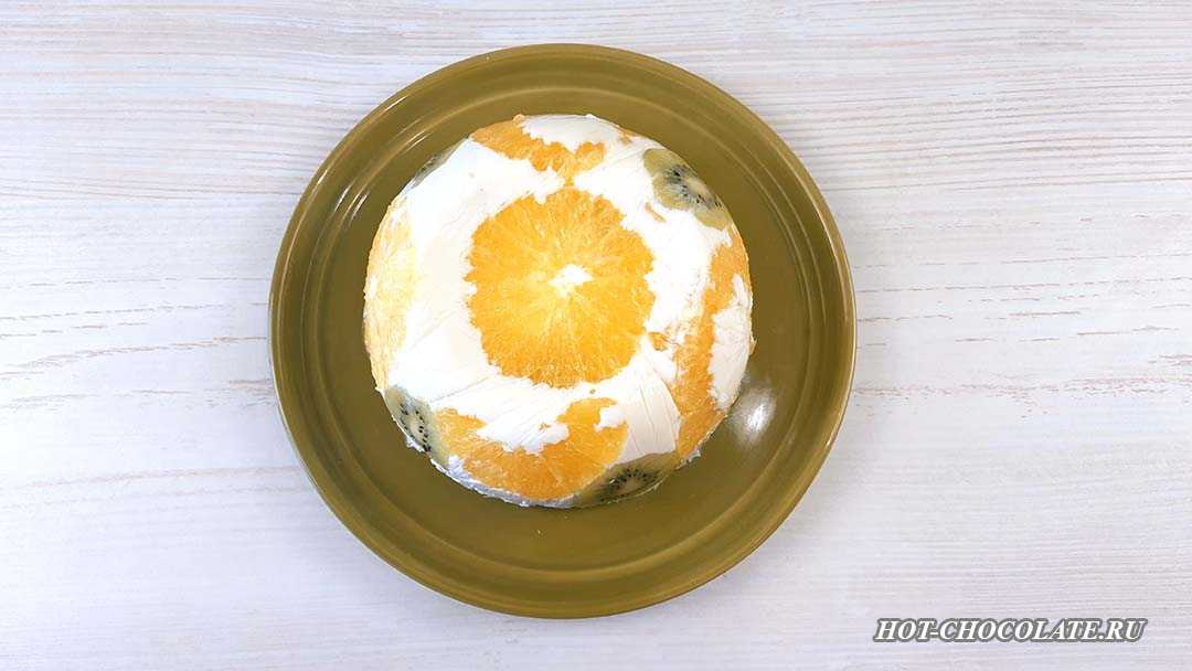 - Готовый торт вынимаем из формы. Украсить торт мы можем свежими фруктами или кусочками шоколада.
