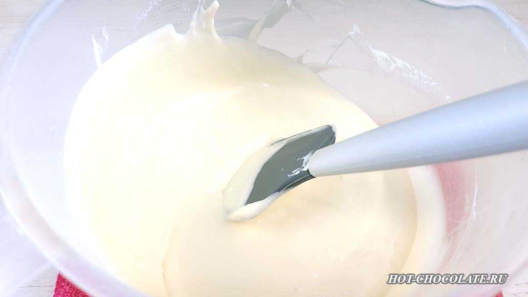 Не останавливая взбивание, влейте остывший желатин и еще немного помешайте.