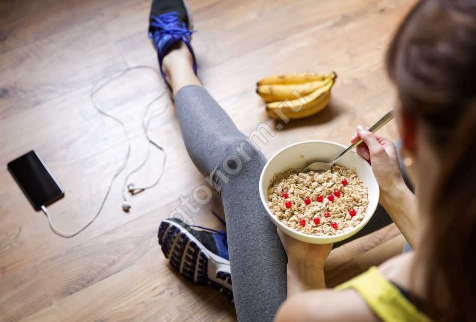 - Если худеть вы не планируете, то оптимальный вариант – разделить сытный завтрак на две части: одну скушать до занятия, вторую – после.