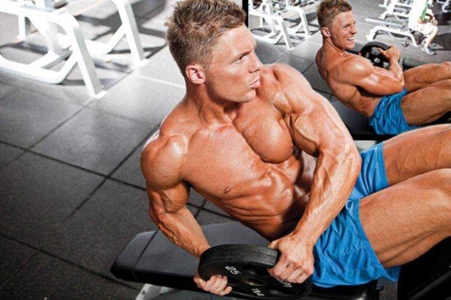 - Скручивания на наклонной скамье 4 подхода по 6-12 повторений.