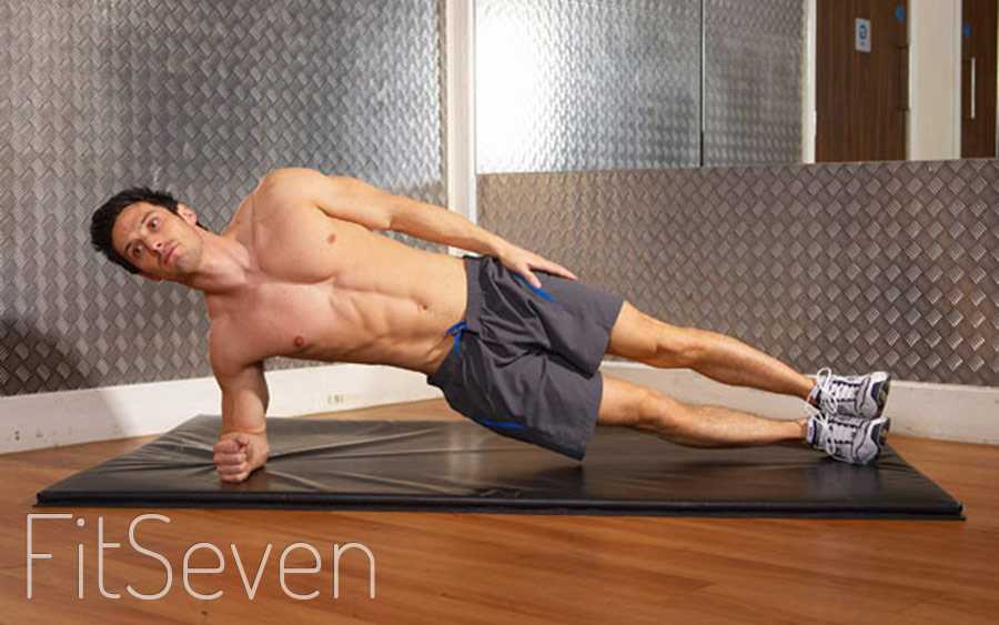 Опираясь на локоть, держите тело вытянутым в прямую линию от макушки до пальцев ног, поддерживая мышцы бокового пресса в напряжении. Во время выполнения упражнения сохраняйте нормальный ритм дыхания и следите, чтобы таз не опускался слишком низко // 20-30 секунд на левую и 20-30 секунд на правую стороны тела. Суммарно 2-3 подхода.