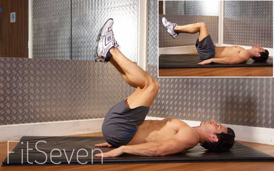 Обратные скручивания – необходимо лечь на спину, на ровную твердую поверхность. Найти опору для рук, либо взяться руками за диван или другой тяжелый предмет. В этом упражнении работает только нижняя часть тела, поэтому верх нужно надежно зафиксировать. Поднимайте ноги вместе с тазом вверх. Начать можно с согнутых ног, со временем переходите на прямые ноги, так как нагрузка при этом выше.