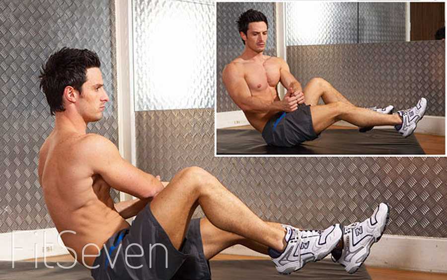 Сядьте на пол, корпус отклоните назад, ноги слегка согните в коленях и поднимите над полом. Руки сложите ладонями друг на друга. Поверните корпус в правую сторону и опустите ладони к полу. Не возвращаясь в исходное положение, поверните корпус влево и снова опустите руки вниз. Упражнение не только прорабатывает косые мышцы живота, но также тренирует выносливость.