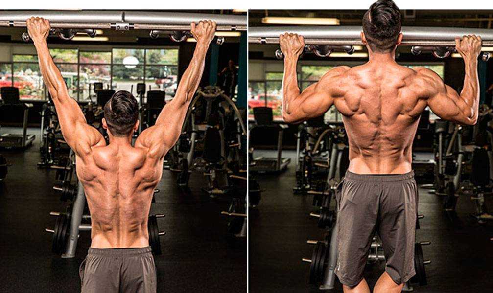 Подтягивания на перекладине — это базовое упражнение для тренировки широчайших мышц спины и всего плечевого пояса в целом. Считается самым эффективным упражнением для расширения спины. В зависимости от используемого хвата в разной степени нагружается спина и руки. При прямом хвате нагрузка главным образом ложится на широчайшие мышцы спины. Бицепс лучше всего прорабатывается при обратном хвате. Более широкий хват лучше воздействует на спину, более узкий на руки.