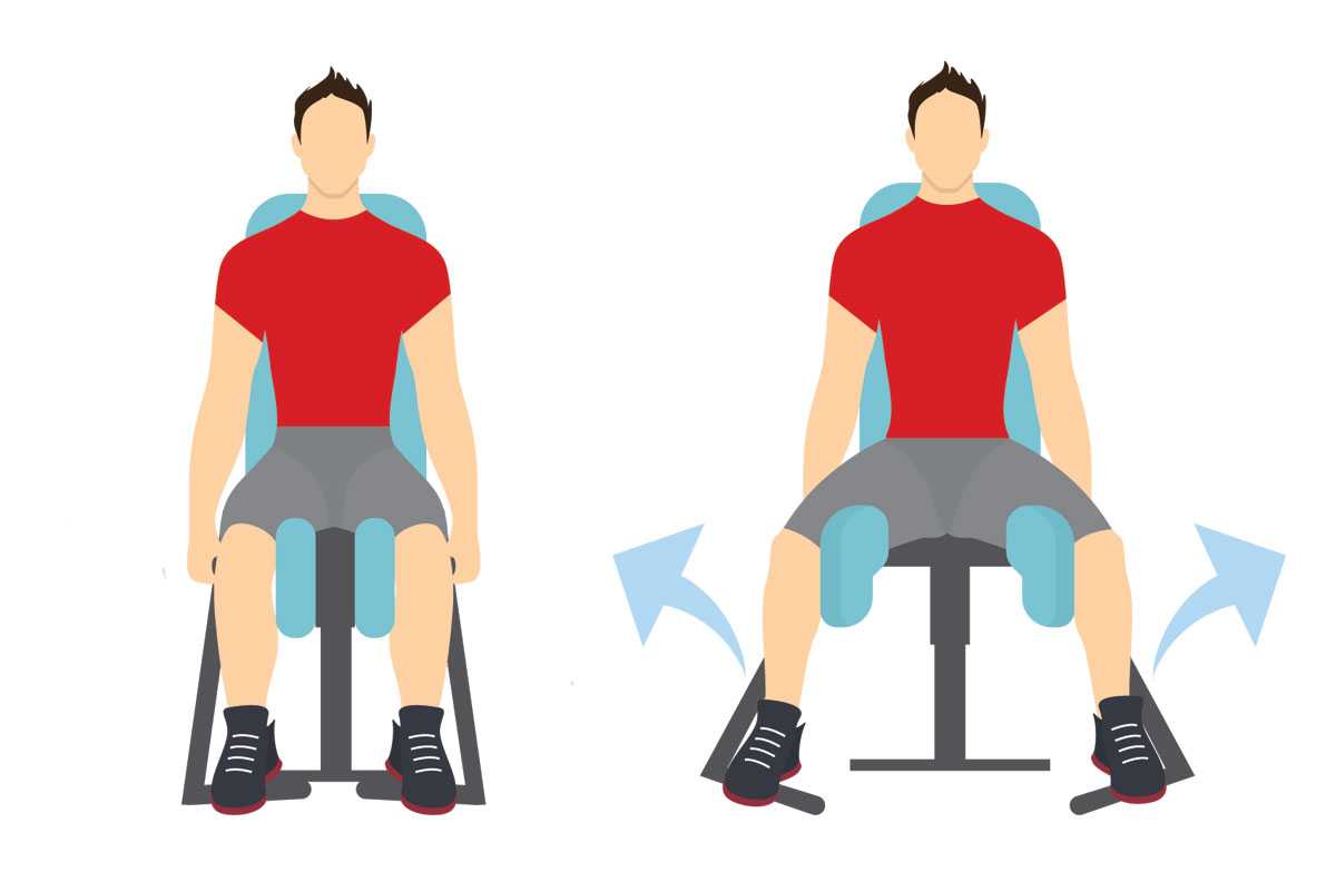 Изолирующее упражнение для прокачки передней поверхности бедер (квадрицепсов). При выполнении необходимо следить за тем, чтобы спина оставалась прямой — а пресс был в легком осознанном напряении.