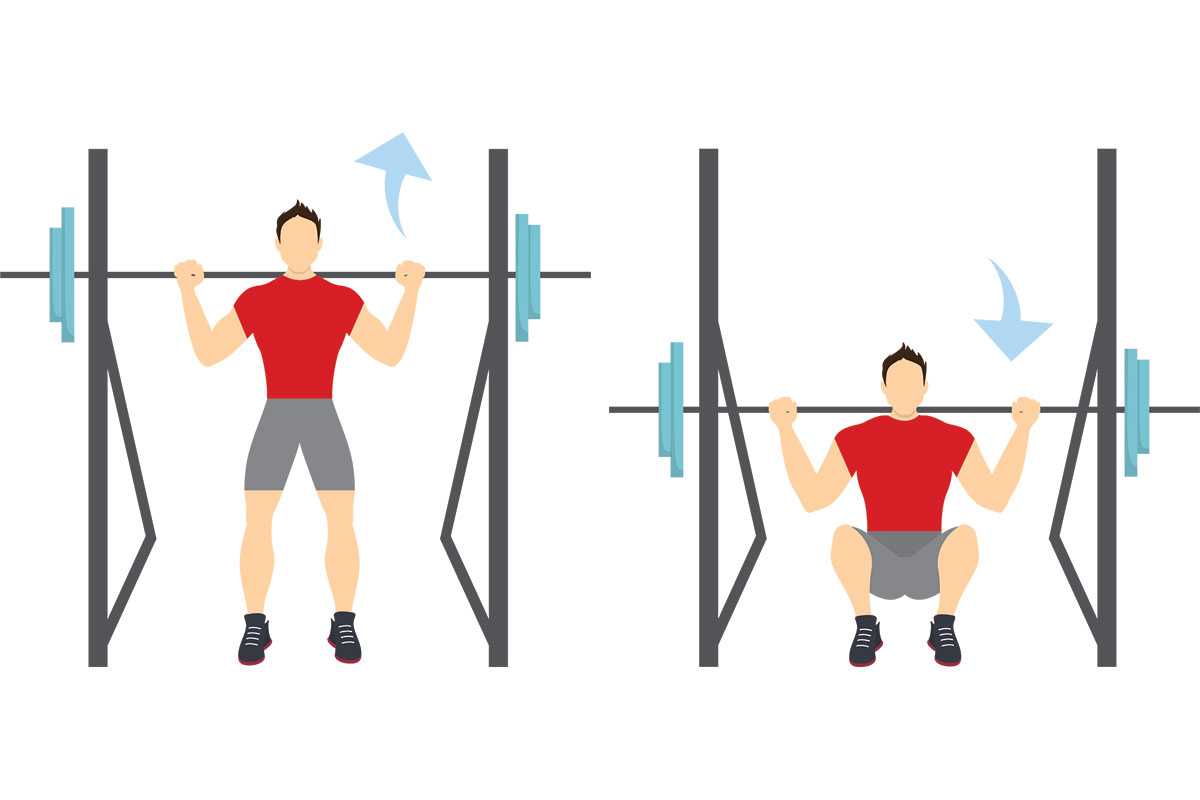 - Приседания со штангой — 2-3 подхода по 5-7 повторений